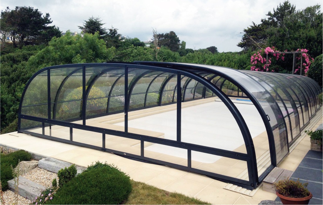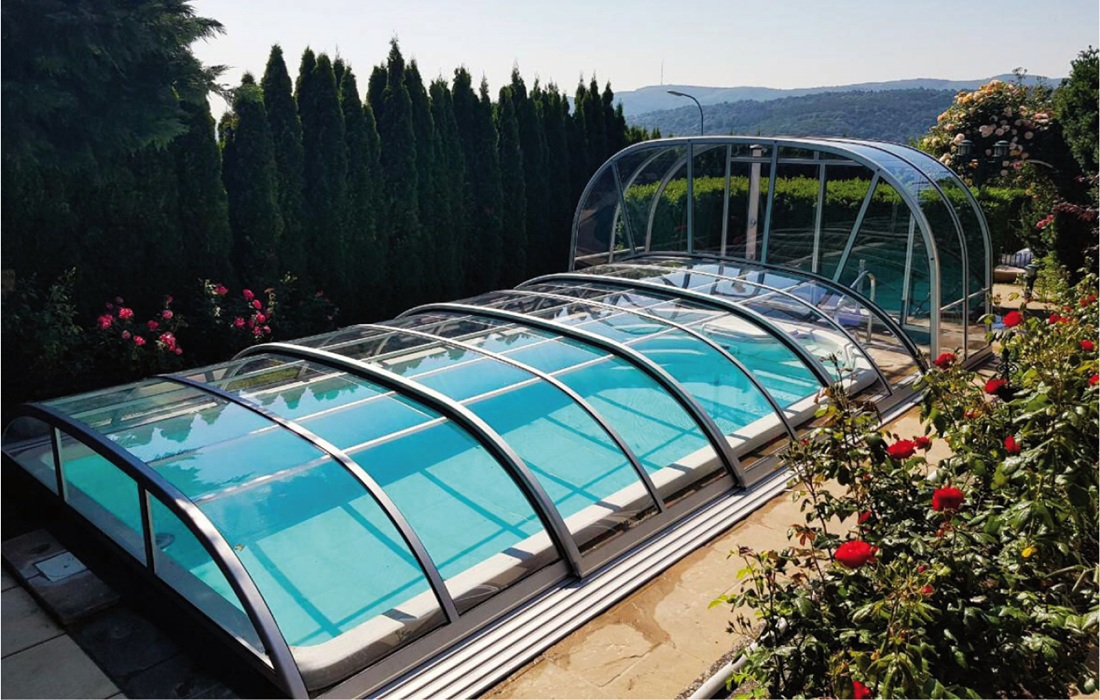 EXTRA FLACHE POOLÜBERDACHUNG MIT MODERNEN DESIGN